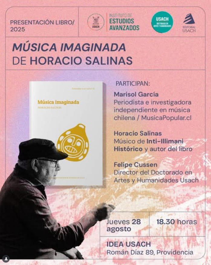 El próximo jueves 28 tendremos el honor de recibir a Horacio Salinas en @ideausach para conversar, junto a @solgarcia__ , sobre su último libro "Música imaginada", publicado por @editorialusach . ¡Todos/as invitados/as!